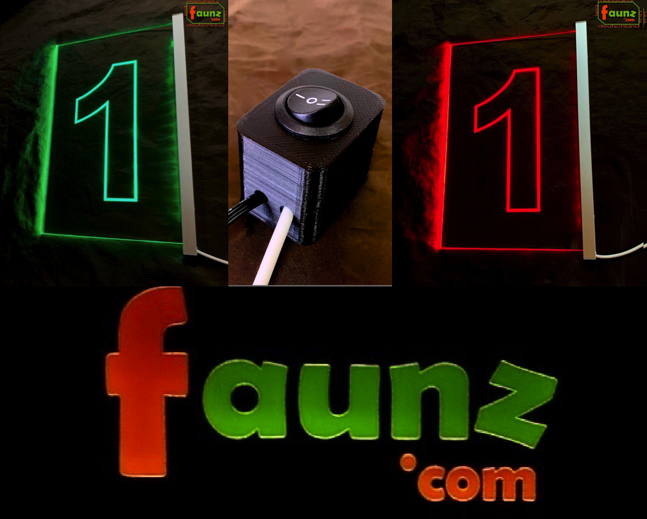 Wir empfehlen die opake Vollgravur in Kombination mit einem transparenten Hintergrund: Bei ausgeschalteter LED-Beleuchtung wirkt das Schild dezent und unauffällig. Erst bei aktivierter Beleuchtung leuchtet die Ziffer farbig und deutlich erkennbar.